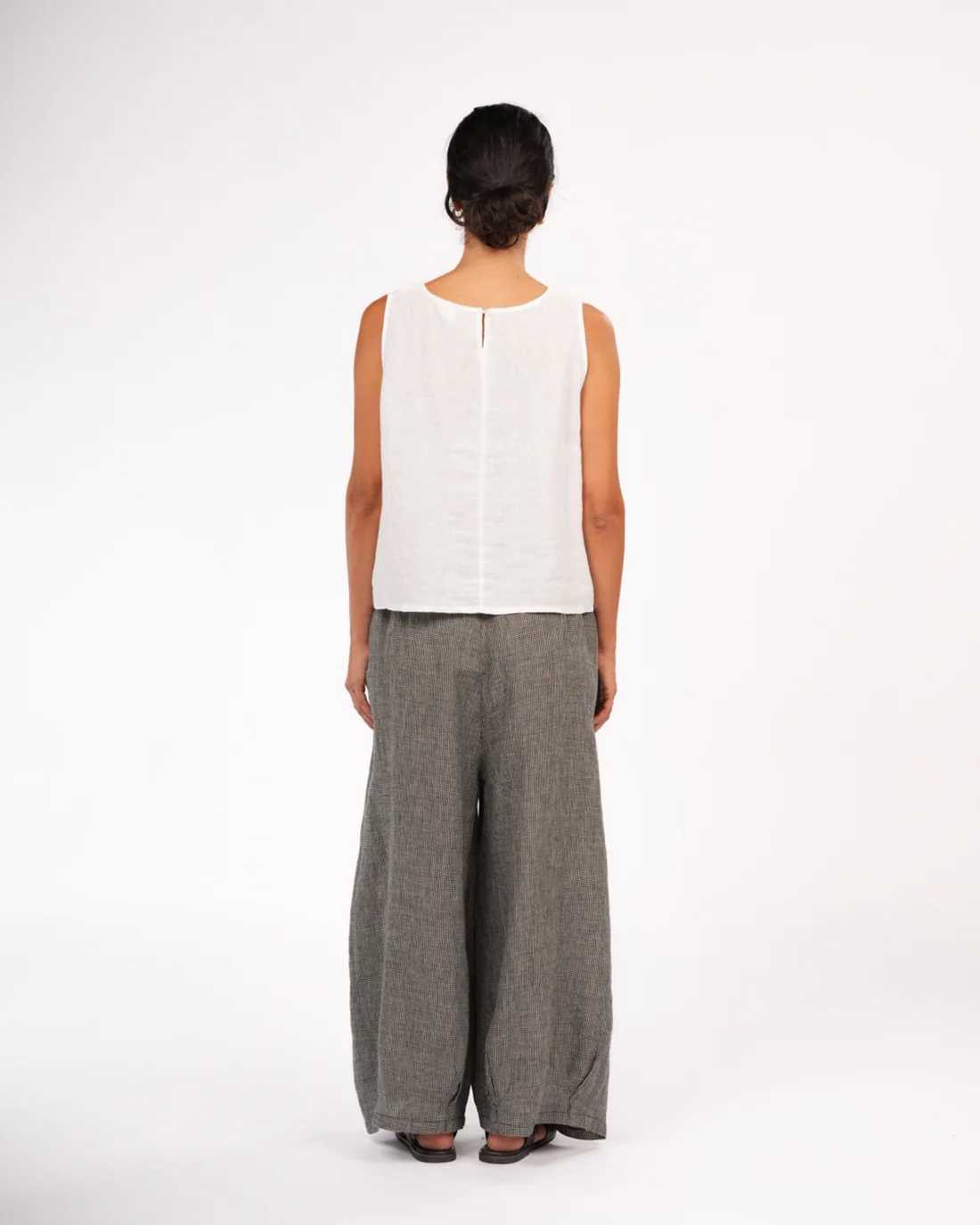 Discover the perfect blend of timeless style and exceptional comfort with our best-selling Eadie Linen Pants. Crafted from the finest hand-selected French linen, these pants feature a subtle fine houndstooth pattern that adds a refined touch to any outfit. Designed in a versatile one-size fit, they offer effortless wearability without compromising on style. Whether dressed up or down, the Eadie Linen Pants are a luxurious staple that elevates your wardrobe with every wear.