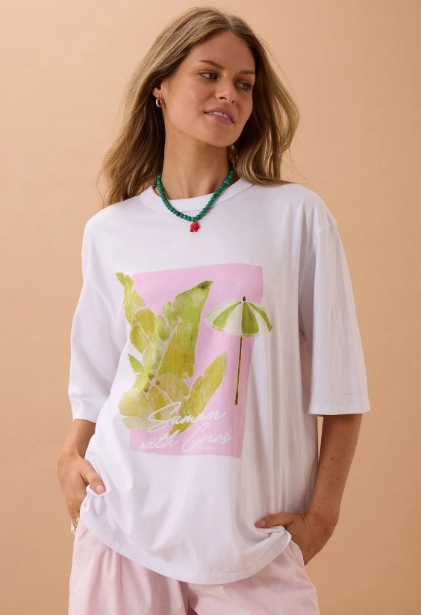 / LIV OVERSIZED TEE/WHITE/COASTAL LEAVES