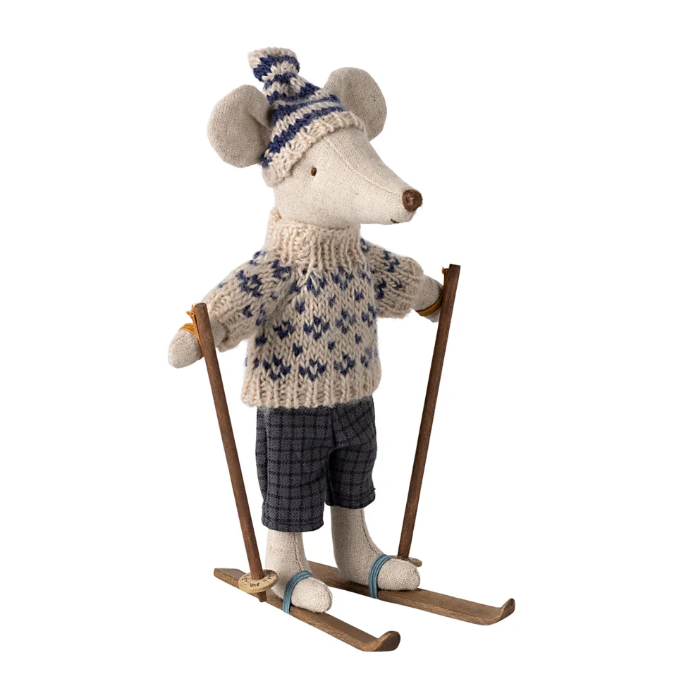 Each playset contains a warmly dressed mouse with a pair of skis and poles. With a tiny knitted hat to keep their ears warm. Measures 15cm in length.