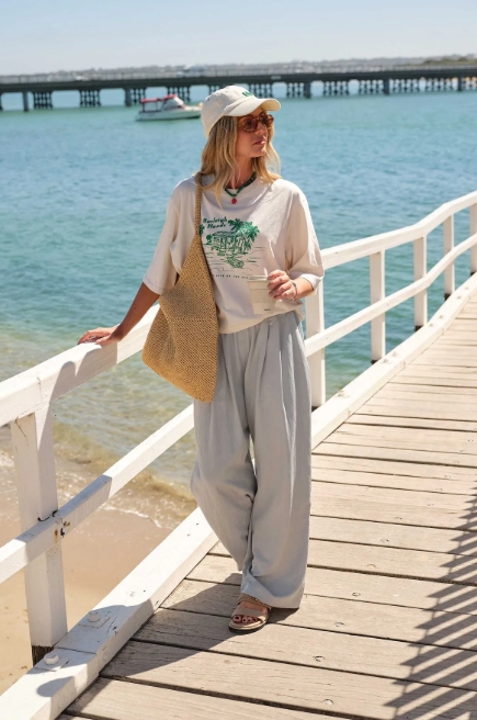 The Mim Pleat Pant is made from a lightweight lyocell blend, offering a soft touch and just the right drape to move with your busy days. With a pull-on elastic waistband, front pleats, and a relaxed barrel leg, it’s effortless style that feels as good as it looks.