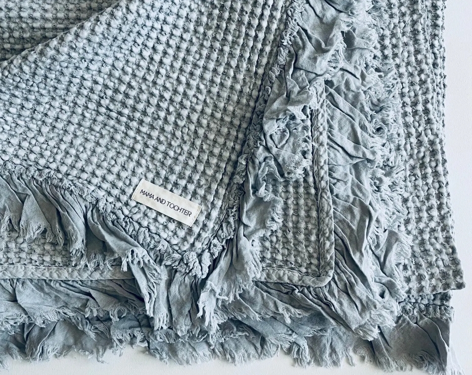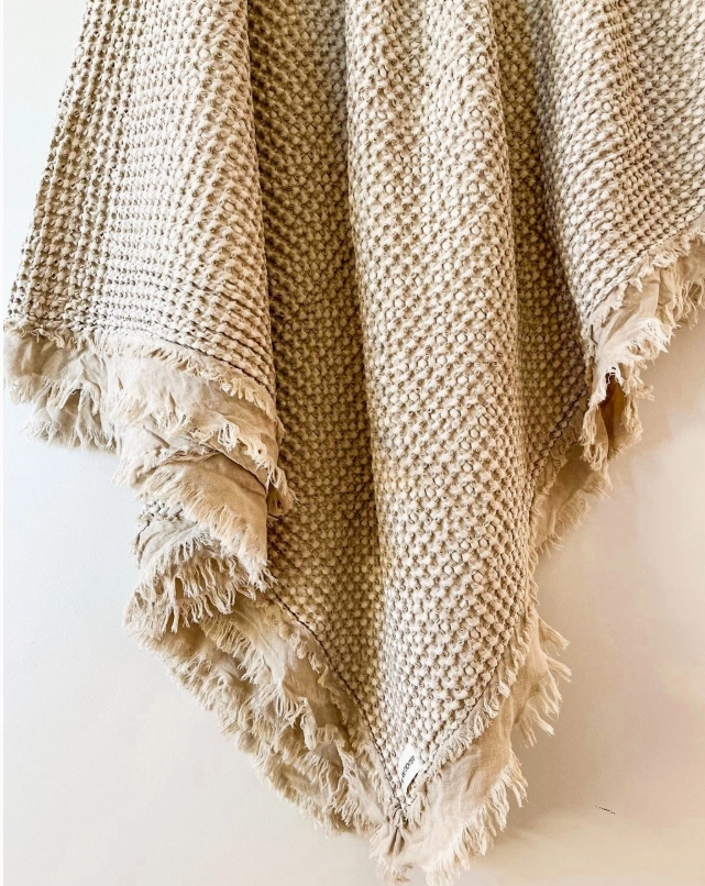 Add a touch of rustic charm to your living room, bedroom, or office with this unique waffle weave design throw blanket. The frayed cotton ruffle edging adds a playful and whimsical touch, making this blanket a standout piece in your home decor, whilst the stunning texture creates a subtle focal point in any setting.