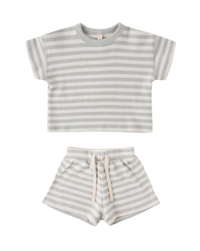 WAFFLE TEE + SHORT SET SKY STRIPE